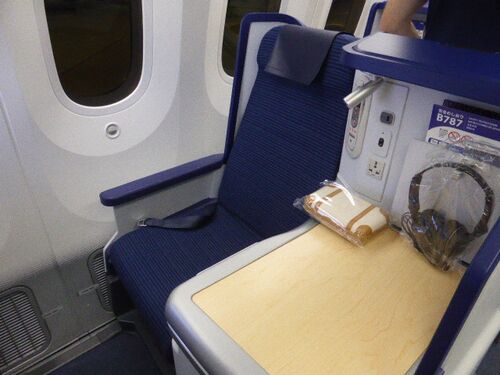 ビジネスクラスです!! 人生初です!! 優先搭乗~~(≧∇≦) もちろん左ね!! そして~我が座席~~~ 色々用意されてる!! 敷布団、掛布団、枕、ヘッドホンはお借りするんですが・・・ スリッパと化粧ポーチは持ち帰りOK!! シドニー便は長距離路線なので…