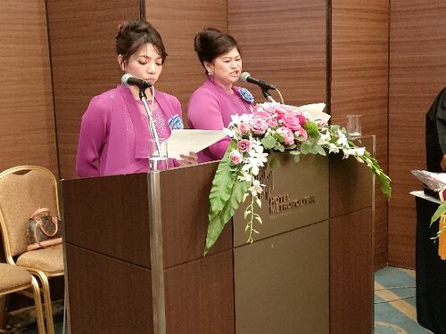 世界華人工商婦女企管協會 この夏に一泊二日のバス旅行でご一緒した台湾華僑の女性実業家の皆さん… 今回は、新会長と新役員のお披露目の会に参加! まずは、池袋メトロポリタンホテルの4階に向かい 新旧役員の交代式を拝見… メンバーの皆さんは、お揃いの紫…